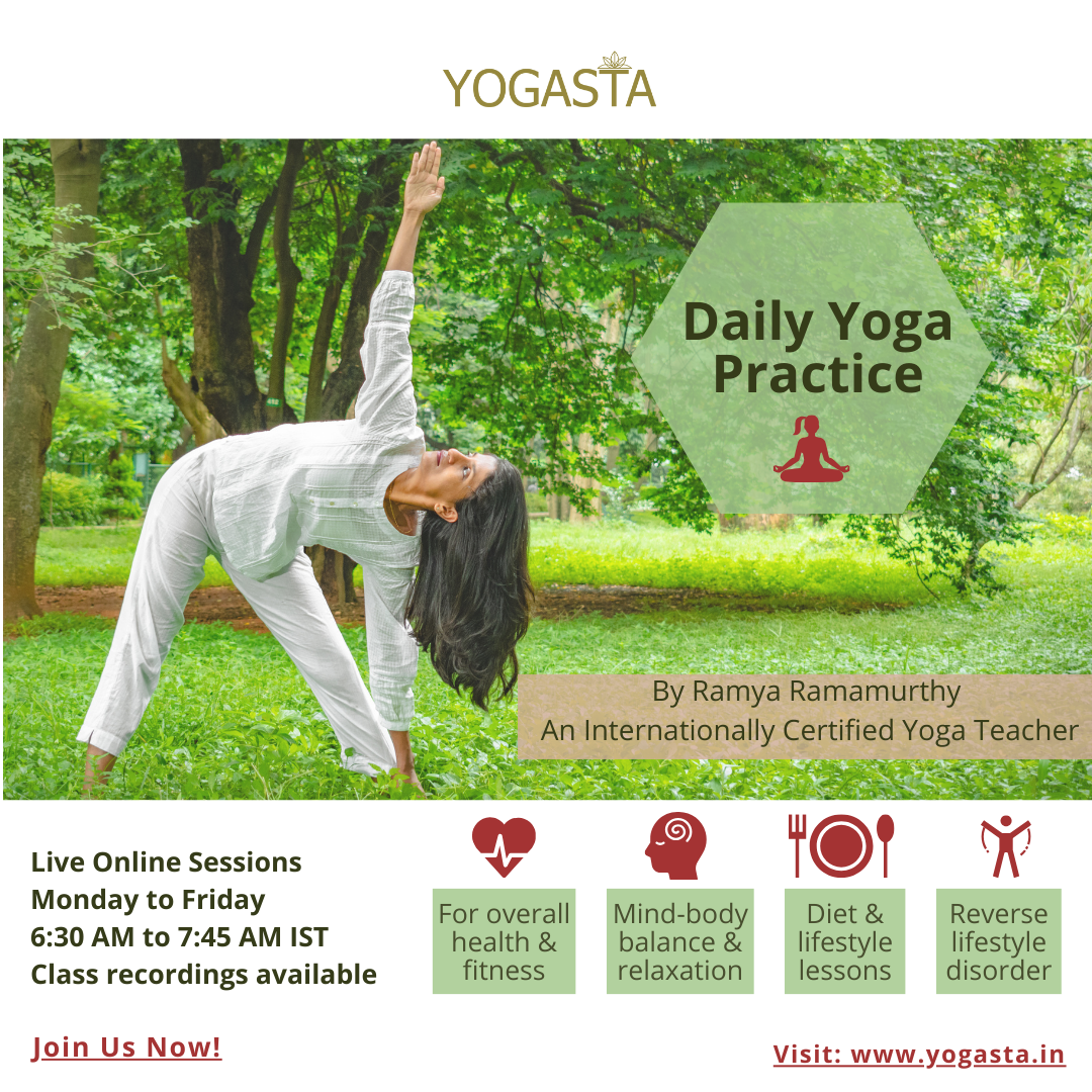 ‘Yogasta’ is an abode for ‘Yoga practice, Yoga learning and Holistic well-being’ created by Ramya Ramamurthy with an intent to make Yoga accessible to everyone. Yoga is a life transforming experience that works from inside out. Yoga has transformed Ramya’s life and she wants to share the same experience with others through her teachings. For Ramya, clearly yoga is not just about physical practice and so she focuses deeply on connecting with breath and inner self through movements and stillness. Her mission is to inspire her students by sharing her knowledge and practice which will allow them to transform themselves. Her teachings will include a combination of strength-based, mobility, flexibility, breathing practices, mindfulness practices and mind-body relaxation to allow one to experience the benefits of Yoga and its practices- not just physically but also mentally and emotionally. Through Ramya’s classes be prepared to feel good, amazed, energized and relaxed after each class.