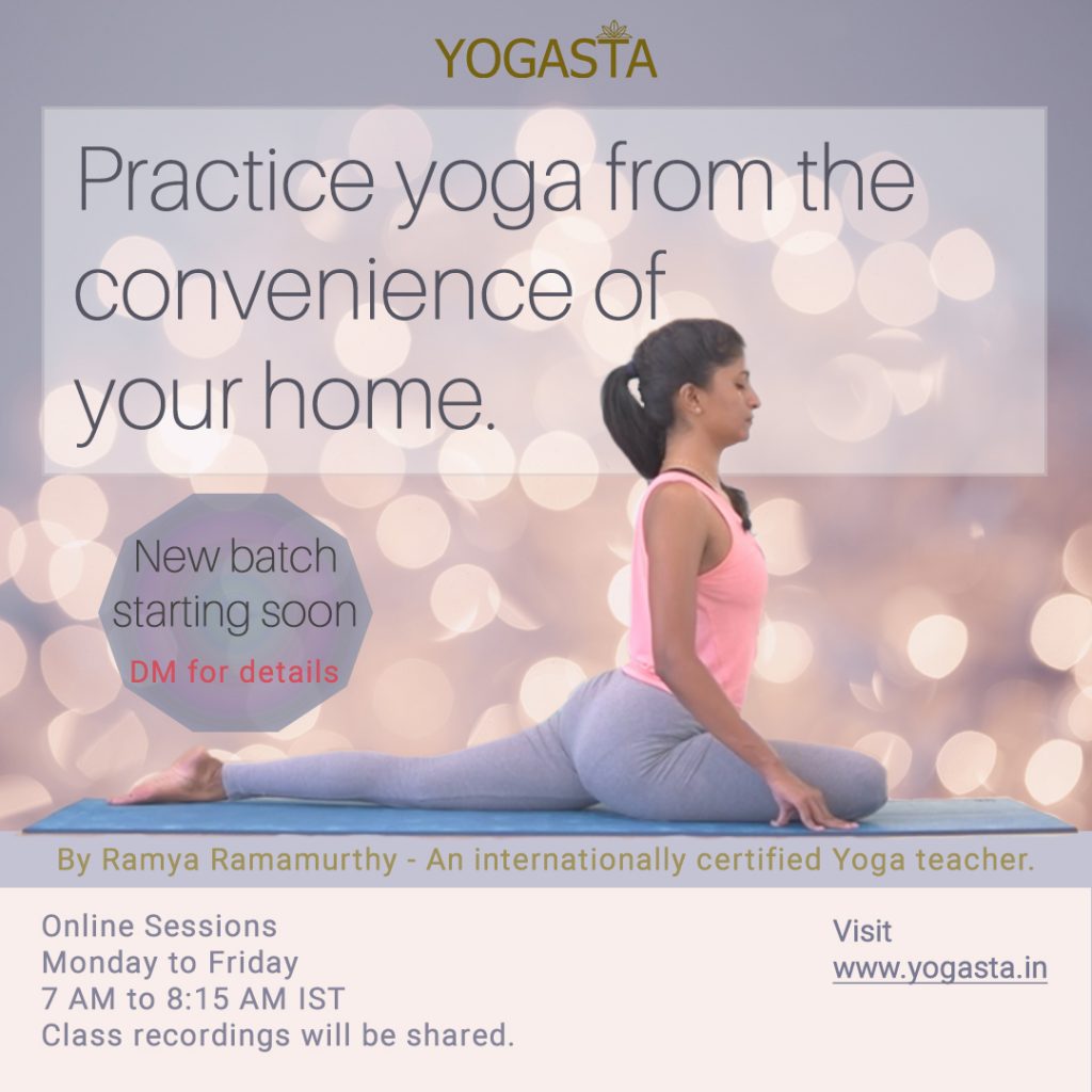 Ramya Ramamurthy is an Internationally Certified Yoga Teacher and has a student base around the world, specially in USA, Europe and Asia. She is the founder of ‘Yogasta’,an abode for ‘Yoga practice, Yoga learning and Holistic well-being’ created by her, with an intent to make Yoga accessible to everyone through her in-person and online teachings. Ever since she began teaching yoga, she has taught and conducted in-person and online yoga classes, yoga workshops, online yoga programs and yoga retreats reaching out to more than 10,000 people. Her biggest asset in teaching Yoga is her ability to break down ‘Yogasanas, Pranayama and Meditation’ practices in a simple and clear manner, so that it can be accessible to all the students who practice with her, no matter at which level of practice they are at. For Ramya, yoga is not just about physical practice and so, she focuses deeply on connecting with breath and inner-self through movements and stillness. Her mission is to inspire people by sharing her knowledge and practice which will allow them to transform themselves and live a healthy life. Through her yoga classes, workshops, programs and retreats Ramya wants to make the holistic knowledge of yoga and its practices accessible to everyone. Her teachings include a combination of strength-based, mobility, flexibility, breathing practices, mindfulness practices and mind-body relaxation to allow one to experience the holistic benefits of yoga and its practices- not just physically but also mentally and emotionally.